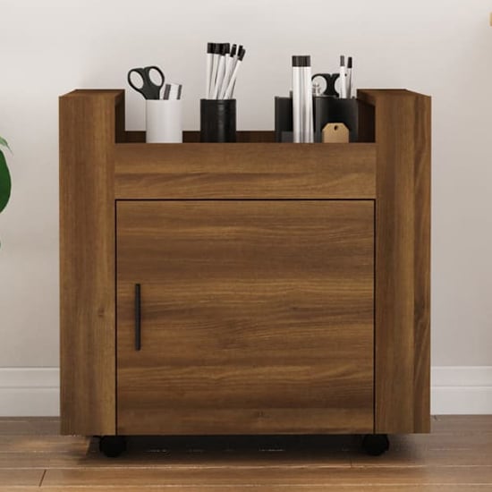 Introducing the Destin Wooden Office Pedestal Trolley with 1 Door in Brown Oak, a versatile and functional addition to your workspace from Furniture in Fashion. Elevate your office organization with this compact trolley that seamlessly combines style and utility, offering both storage and mobility. Experience the natural charm of the Destin Office Pedestal Trolley, featuring a rich Brown Oak finish that adds warmth and sophistication to your office environment. With a thoughtfully designed door, this trolley provides discreet storage space for your office supplies and essentials. Meticulously crafted with attention to detail, the Destin Wooden Office Pedestal Trolley ensures durability and longevity through its high-quality construction. The modern design effortlessly complements various office aesthetics, making it a versatile piece that enhances your workspace efficiency. Whether you’re looking to store documents or keep your supplies organized, the Destin Wooden Office Pedestal Trolley with 1 Door offers the perfect blend of form and function. Immerse yourself in Furniture in Fashion’s dedication to excellence in both design and practicality, and transform your office into a haven of style and organization. Upgrade your workspace with the Destin Wooden Office Pedestal Trolley, where storage meets mobility and utility meets aesthetics. Redefine your work routine with a piece that embodies the essence of refined functionality, and make a statement that resonates with your professional taste. FEATURES : Material : Engineered Wood Finish : Brown Oak This desk trolley lets you bid chaos on your desk goodbye and saves you from stacks of papers and untidy messes! The engineered wood is of exceptional quality with smooth surface and also features strength, stability, and resistance to moisture Made of engineered wood, the trolley is easy to clean Featuring 4 casters, the office desk trolley can easily move around your workplace The sturdy top of the under d